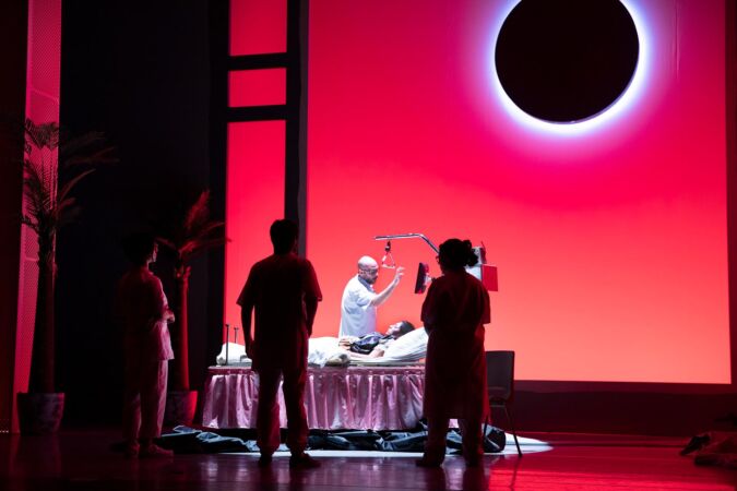 Layla ligt in het ziekenhuis. Ze slaapt, heel diep. Vader Ersin zit dag en nacht aan haar bed en vertelt haar de verhalen uit Duizend-en-een-nacht. Iedereen in het ziekenhuis luistert mee, van de hoofdarts tot de schoonmaker. In Layla’s fantasie komen de verhalen tot leven. Stoere krijgsters bewegen op het ritme van de hartslagmeter, djinns komen tevoorschijn uit een infuus. Terwijl de artsen druk om haar bed dansen, vliegen Layla en haar vader over woestijnen, dobberen ze langs onbewoonde eilanden en dwalen ze door sprookjessteden. Het ziekenhuis en de fantasiewereld lopen steeds meer door elkaar. Wat zeker is: zonder de deskundigheid van de artsen zal Layla niet beter worden, maar zonder de liefdevolle verhalen van haar vader ook niet.