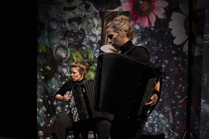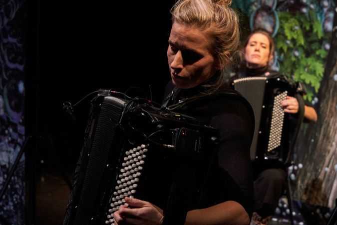 De accordeons van TOEAC, de muziek van Anthony Fiumara (en een vleugje Bach), de tekst van Peer Wittenbols en de regie hebben een gelijkwaardig aandeel in de voorstelling, ze gaan met elkaar een spannende interactie aan. Ria Marks: “Met de fysieke inspanningen van TOEAC om kreunende, snerpende, vileine maar ook melodieuze geluiden uit de accordeons te halen, profileert het duo zich op een organische manier als acterende musici.”