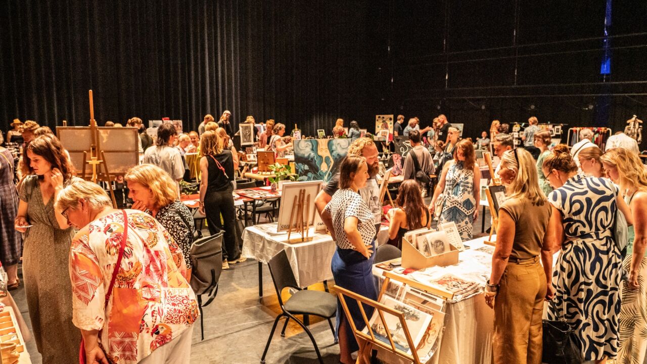 Zondag 22 juni krijgt creatief talent een podium tijdens de Popmarkt bij ons in de schouwburg. Goudse kunstenaars krijgen de kans om hier hun werk te presenteren en te verkopen, midden in het bruisende hart van de Goudse Popweek. Hiernaast is er uiteraard ook live-muziek in de Gouden Zaal: