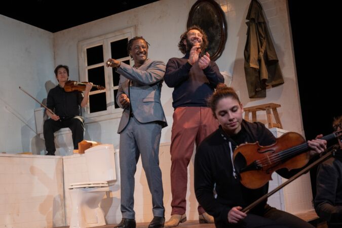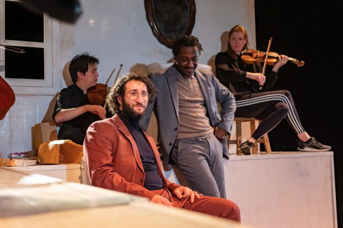 Acteurs en theatermakers Adam Kissequel en George Tobal spelen in hun nieuwe voorstelling Leven twee vrienden die een gezamenlijke vriendin kwijtraken. En dat doen ze aanstekelijk en ontroerend.— de Volkskrant