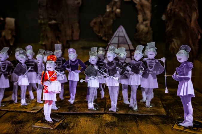 ‘Twee kleipoppetjes die uiterst zorgvuldig zijn vormgegeven, in prachtige kleine decors geplaatst en met subtiliteit en precisie worden bewogen, ondertussen doeltreffend gefilmd en op een groot scherm geprojecteerd ‘