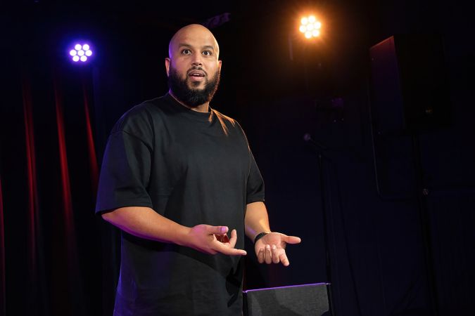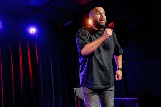 De persoonlijke verhalen van Musa raken op het éne moment de gevoelige snaar en leiden dan weer tot een lachstuip.— Theaterparadijs